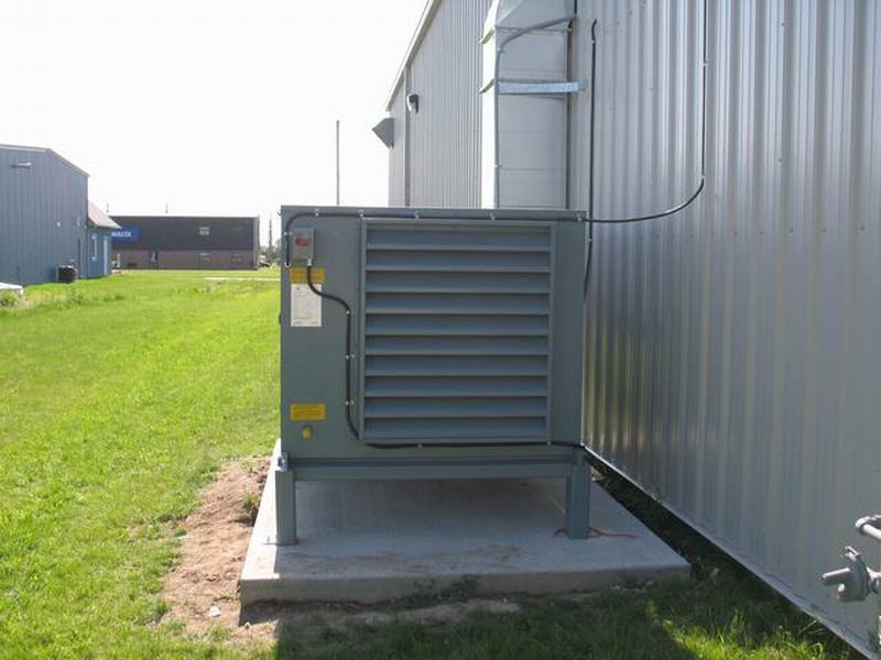 Heater casing is fabricated of heavy duty 18 Gauge satin-coated steel. Base frame is integral iron channel construction. The unit is equipped with large access doors that make the blower, motor, drives, burner and controls fully accessible. All units are insulated with 1" high quality insulation. Units are equipped with a water resistant control enclosure housing for all electrical controls and gas manifold. The units are painted with two-component epoxy coating.
