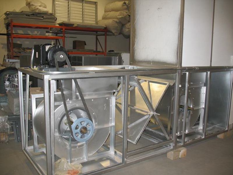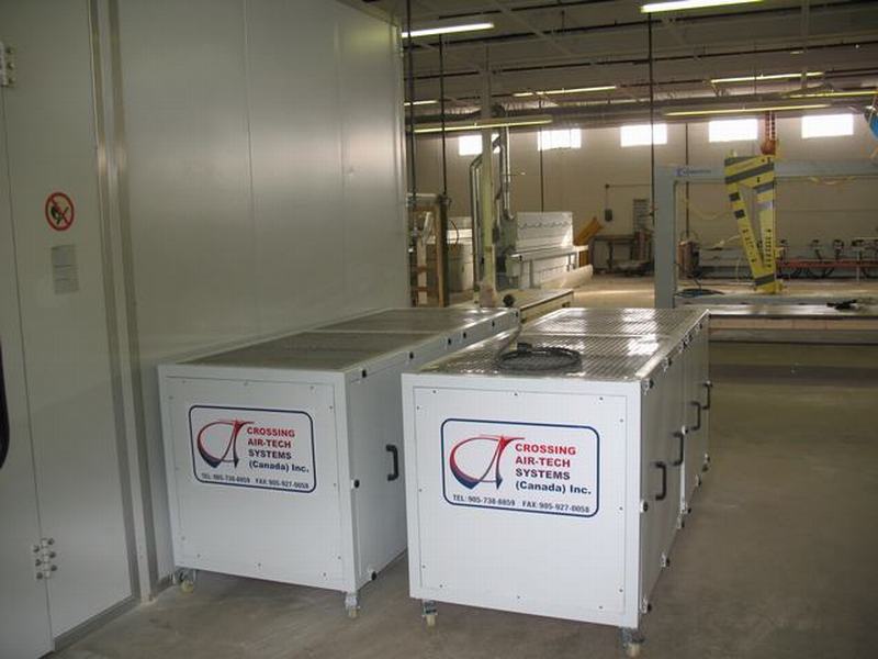 90% heated air re-circulates inside of this full downdraft spray booth. It is energy efficient spray booth and air make up unit.