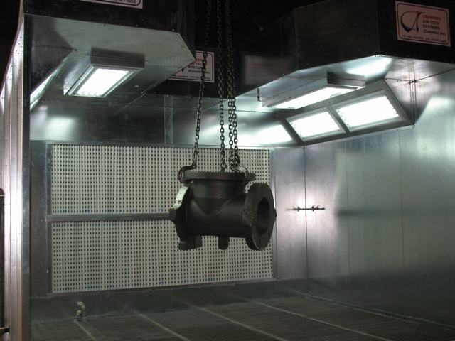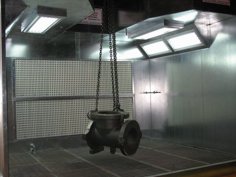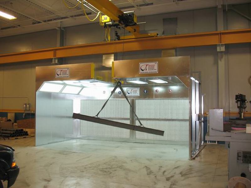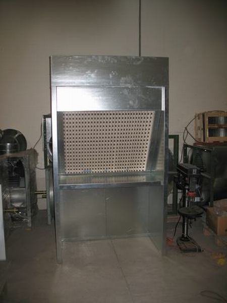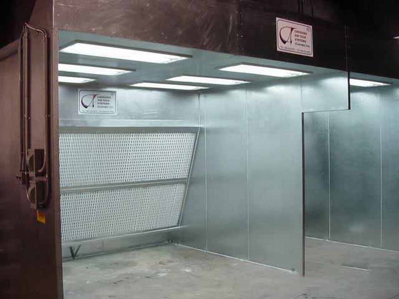 The air enters the working chamber unfiltered through an open face. The particulate is captured by filter bank and 100% exhausted through exhaust duct and stack into the atmosphere. It is economical solution to remove over spray.