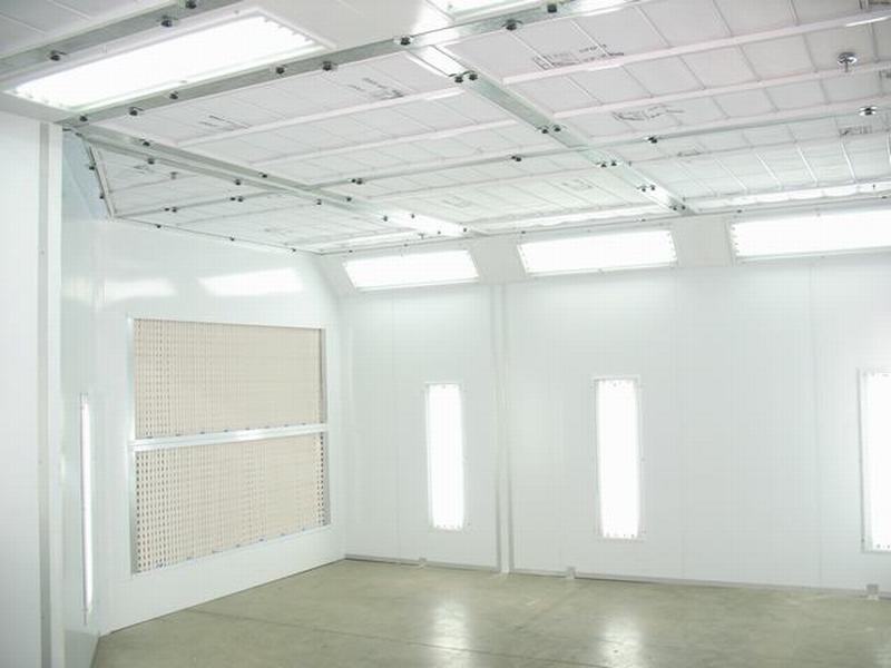 The booth wall is completed with insulated panel. 2.3/4"(6cm) thickness, 3 ply sandwich with Dual 8mm pre-painted steel skin, exterior and interior finishes.